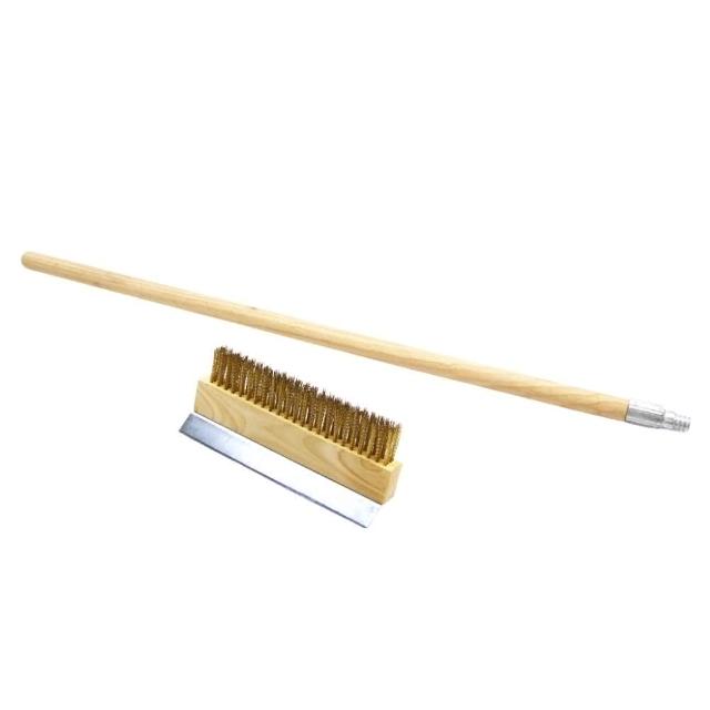 廚Fun烤箱銅刷 長木柄烤箱銅刷 窯烤爐清潔銅刷 烤箱刷 木柄金絲刷毛烤箱刷 不銹鋼刮鏟刷 銅刷 刷具 清潔刷