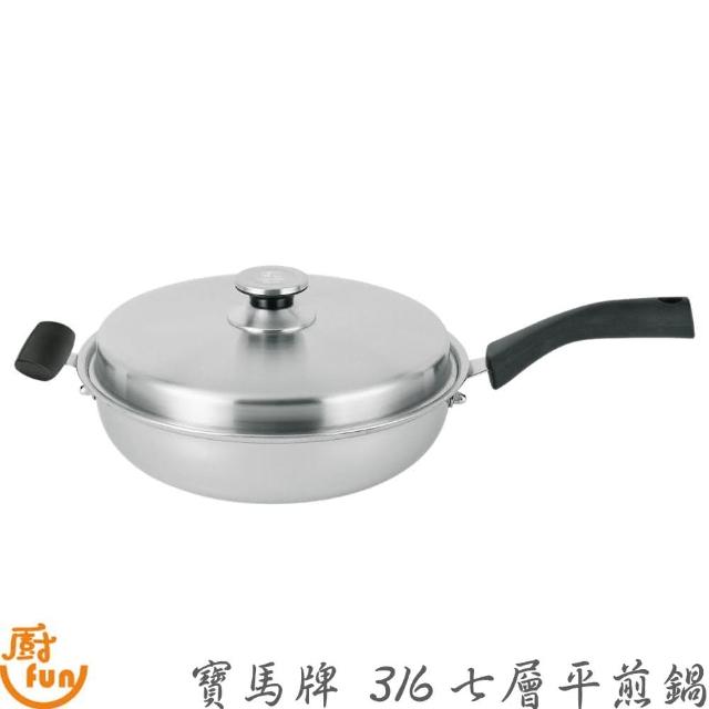 Pearl Horse 寶馬台灣製造 316七層單柄平底鍋 32cm 附不鏽鋼蓋 ( 煎鍋 平煎鍋 炒菜鍋 不鏽鋼煎鍋 七層平煎鍋 寶馬煎鍋 316平煎 鍋寶馬牌 )