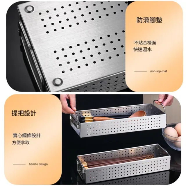 廚Fun304不鏽鋼匙筷瀝水籃 餐具整理盒 筷盒 餐具盒 不鏽鋼瀝水盒 筷籠 餐具籃 餐具收納盒 刀叉收納盒 廚房瀝水籃 瀝水盒