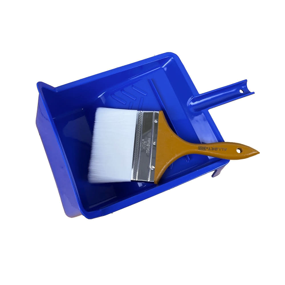 ALLGET手持式毛刷工具組-極細無痕纖絲刷-4.5吋+手持式漆盤(油漆刷 漆盤 乳膠漆 水泥漆 油漆DIY)