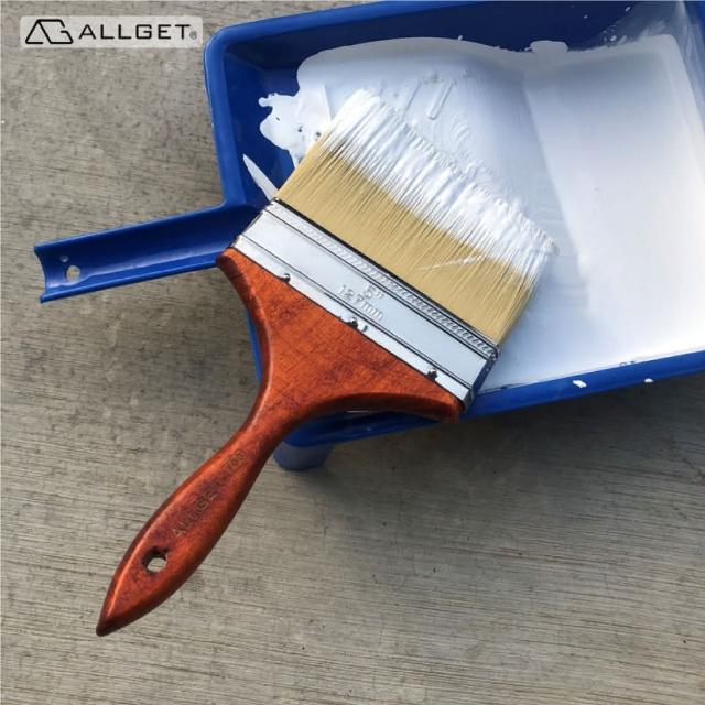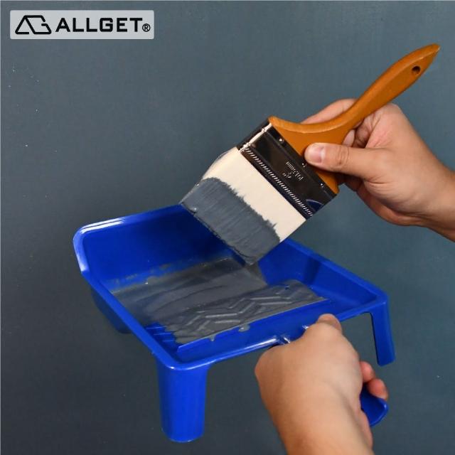 ALLGET手持式毛刷工具組-極細無痕纖絲刷-4.5吋+手持式漆盤(油漆刷 漆盤 乳膠漆 水泥漆 油漆DIY)