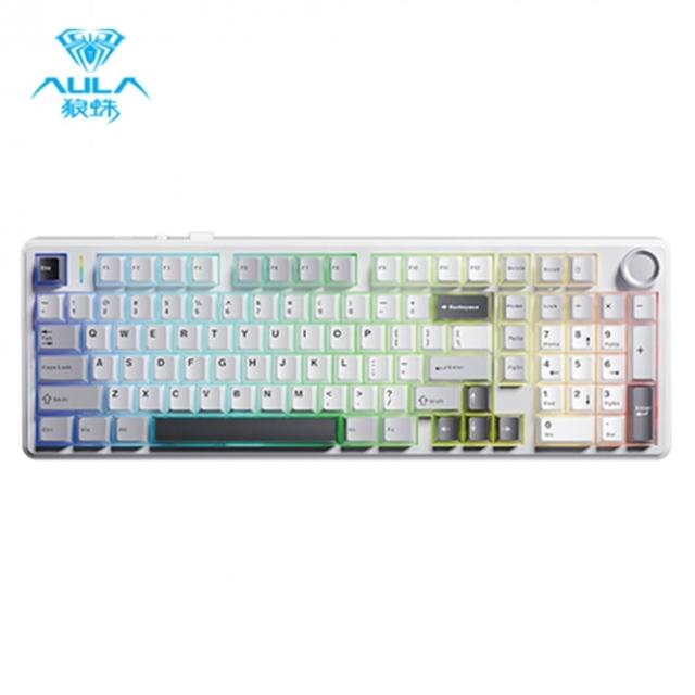 AULA 狼蛛F99pro 暗夜國度 機械鍵盤(淺灰+白+深灰)(星矢軸-繁中) ❰三模❱(2年保固)