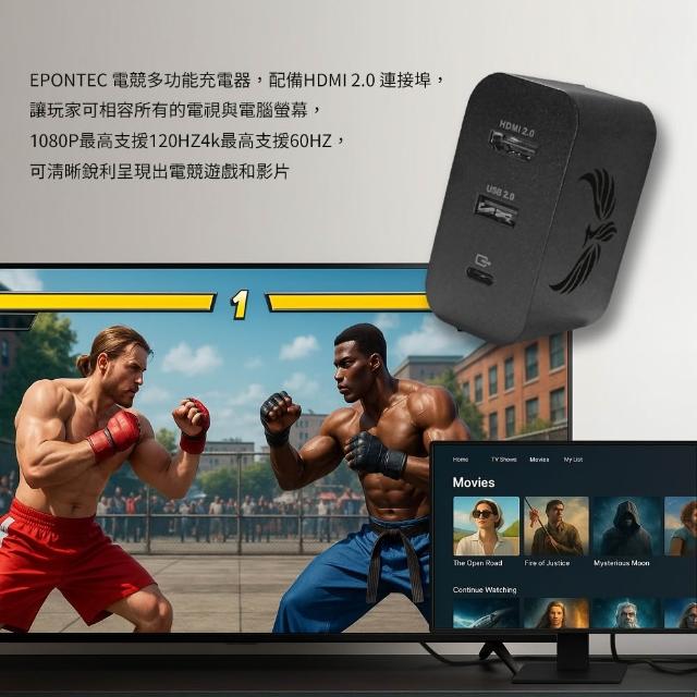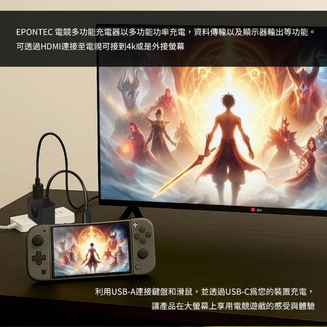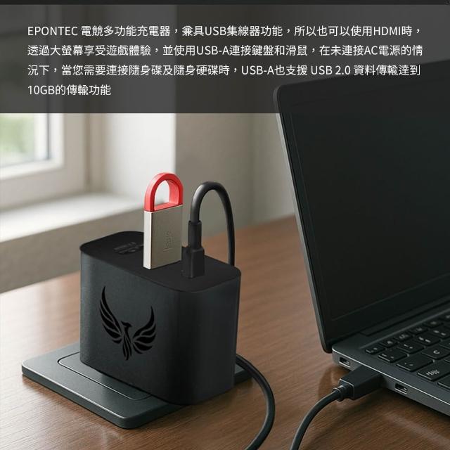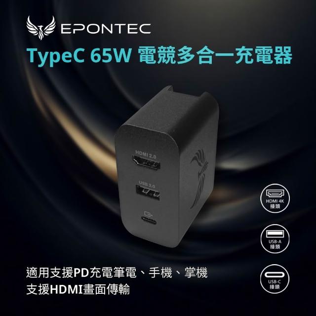EPONTEC TypeC 65W電競多合一充電器 / 支援HDMI畫面傳輸 / HDMI*1、USB*1、TypeC*