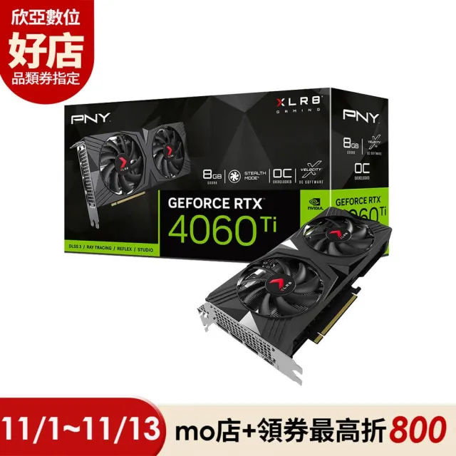 SINYA 欣亞數位PNY RTX 4060 Ti 8GB XLR8 VERTO OC Dual Fan/std:2550MHz/雙風扇