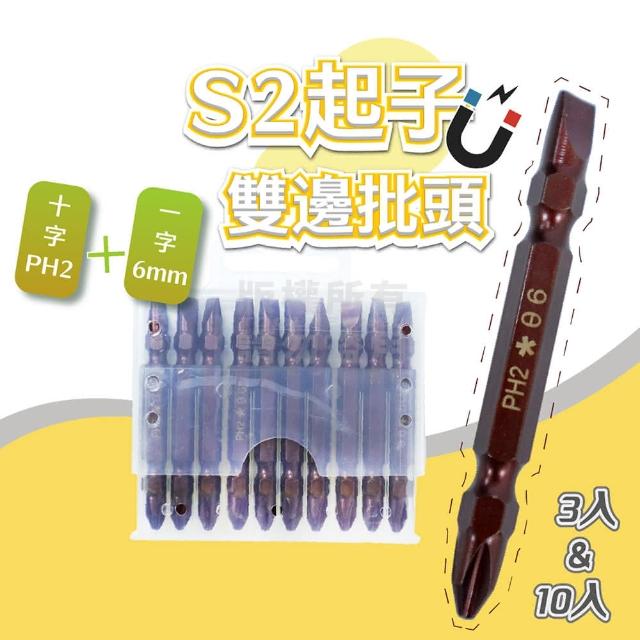 S2雙頭起子頭3入(高扭力 一字起子頭 十字起子頭 電動起子頭 螺絲批頭 電動一字起子頭 自攻螺絲)