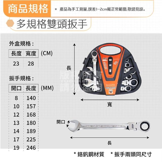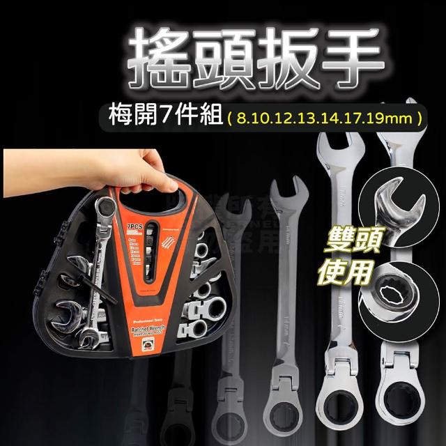 7件組棘輪搖頭扳手(72齒 棘輪活動板手 卡哩卡哩 梅開活動板手 六角扳手 搖頭板手 梅開棘輪 螺帽 汽修)