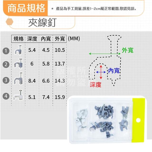 夾線釘四款混裝組(居家DIY 台灣製造 白扁線 網路線 電線 傳輸線 固定夾 走線 集線 明線 居家修繕)