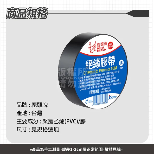 鹿頭牌絕緣膠帶(獨立包裝 台灣製 電火布 絕緣膠布 絕緣膠帶 PVC 電器膠帶 電氣膠帶 電工膠帶 電線)