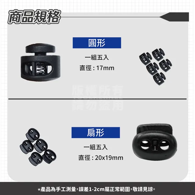 五入卡裝豬鼻扣(圓形/扇形兩款 傘繩扣 塑膠彈簧扣 調節扣 鬆緊調整扣 繩頭固定扣 球扣 外套鬆緊帶)