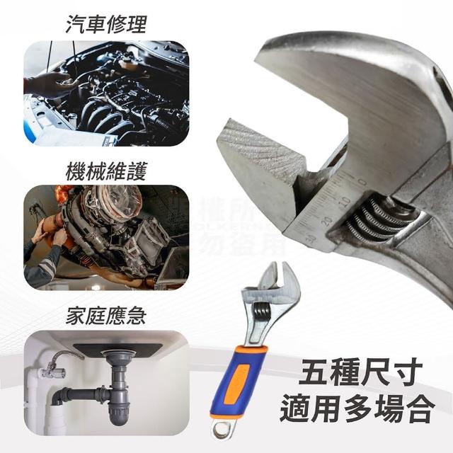 多尺寸膠柄活動板手(刻度 碳鋼 活動扳手 4~12吋 開口扳手 六角板手 螺絲扳手 螺栓 機車螺絲 汽車螺絲)