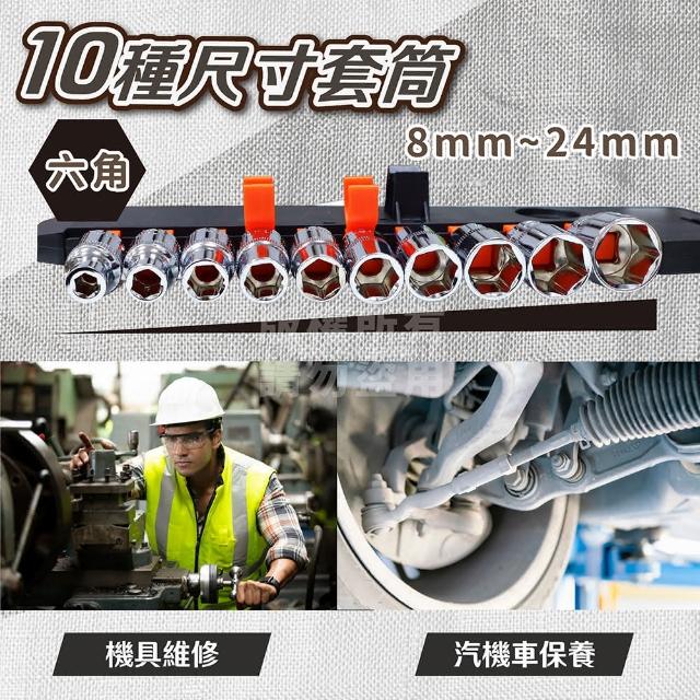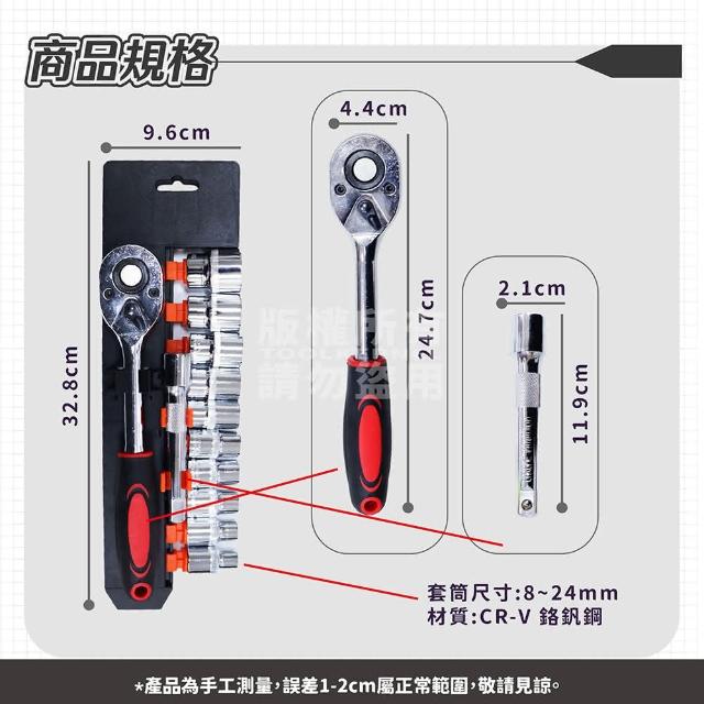 11件組棘輪扳手(4分 8~24mm 套筒組 六角套筒 4分板手快脫扳手 棘輪板手 六角起子 四分)
