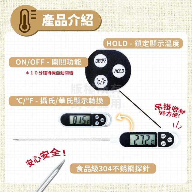 電子食品溫度計(烘焙食物油溫廚房測量計 探針式油溫計 汽車冷氣溫度計 咖啡溫度計 測食物溫度 測溫筆)