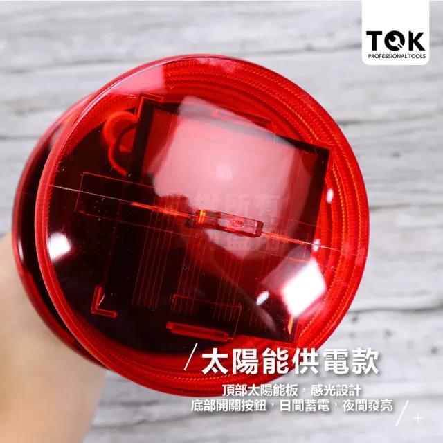高亮度LED警示燈-太陽能款(台灣製 TOK 太陽能警示燈 哈雷燈 握把式警示燈 紅光警示)