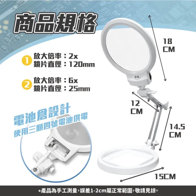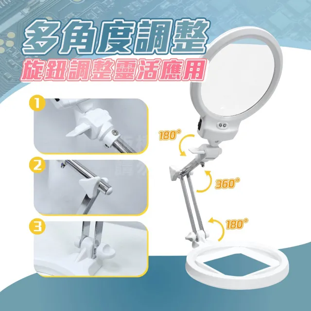 桌面放大鏡(大鏡面 站立式放大鏡 LED放大鏡 工作檯放大鏡 摺疊放大鏡 調整角度 閱讀維修 2倍 放大鏡)