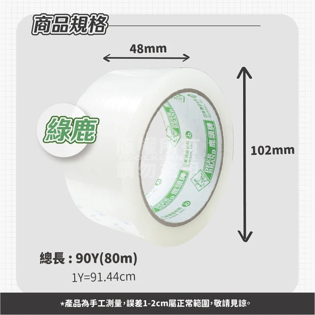 鹿頭牌封箱膠帶(48mm*90y 透明膠帶 經濟款 綠鹿 OPP膠帶 透明封箱膠帶 包貨膠帶 膠帶 寬膠帶)