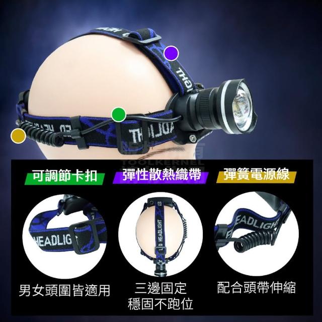 LED魚眼廣角強光頭燈(魚眼廣角款 可換電池 工地帽頭燈 充電式頭燈 鋰電池 18650頭燈 工作燈 露營燈 警示燈)