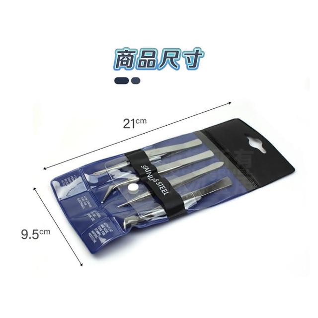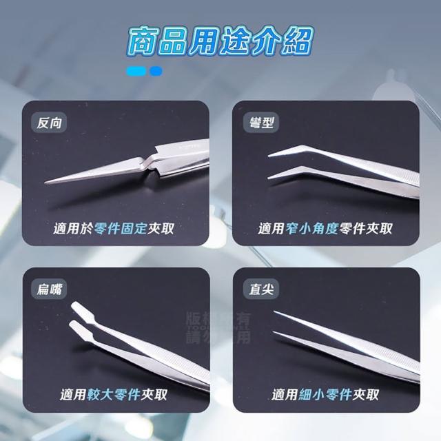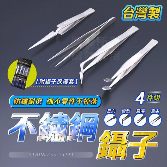 4PCS 不鏽鋼鑷子組(台灣製 鑷子 夾子 尖夾 彎鑷子 直夾 扁頭 模型 零件 貼鑽 串珠 美甲 美睫)