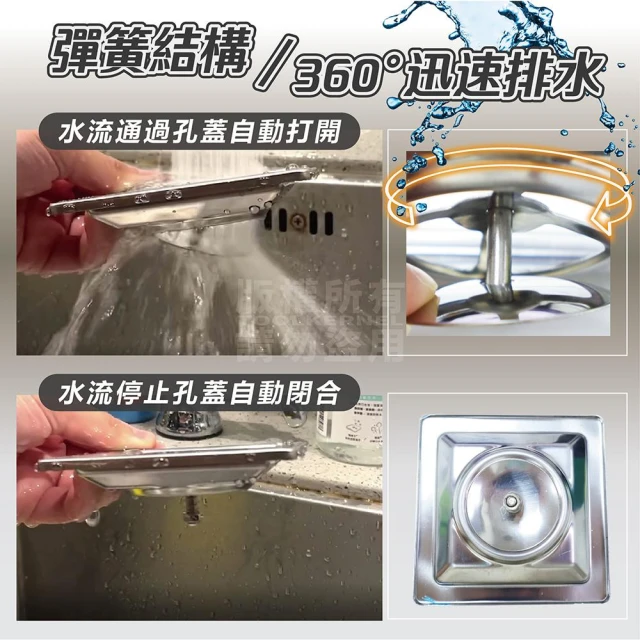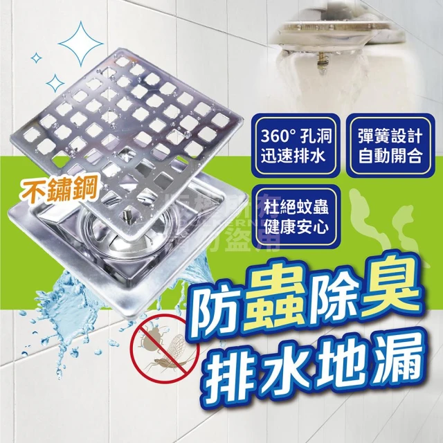 防蟑地板蓋(9x9cm 方形 自動開關 不銹鋼 防蟑螂排水孔蓋 防臭防蟑地板蓋 落水頭 浴室排水孔 方形排水蓋)