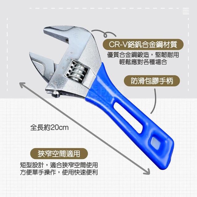 大開口短柄板手-大款20cm-開口45mm(鐵製防滑柄 合金鋼 附刻度 衛浴扳手 水槽扳手 板手 萬用扳手 衛浴板手)