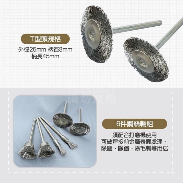 迷你鋼絲輪(帶柄鋼絲輪 六入套組 鋼刷 帶柄鋼刷 齊頭刷 筆型刷 平型刷 電磨刷 除鏽 打磨 拋光 鋼絲)