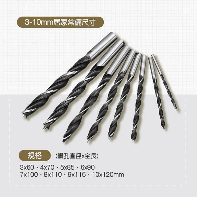 三尖木工鑽-圓柄3-10mm(木工鑽尾 八件組 木鑽尾 木工鑽 鑽頭 鑽尾 開孔 鑽洞)