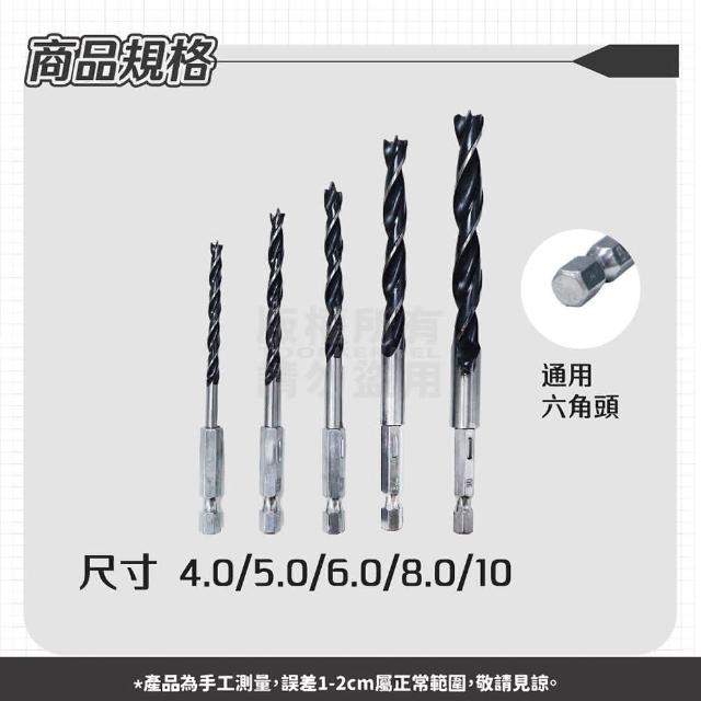 三尖木工鑽-六角柄4~10mm(木工鑽尾 五件組 木鑽尾 木工鑽 鑽頭 鑽尾 開孔 鑽洞)
