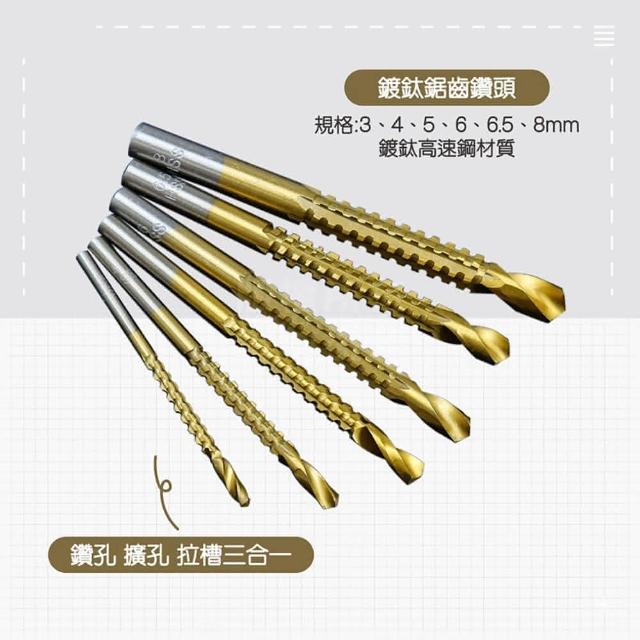 鋸齒麻花鑽6入(鍍鈦鑽頭 鋸鑽合一 鑽尾 鋸齒鑽 鑽孔 開孔器 拉槽 木工鑽 鐵工鑽 開孔 擴孔 電鑽)