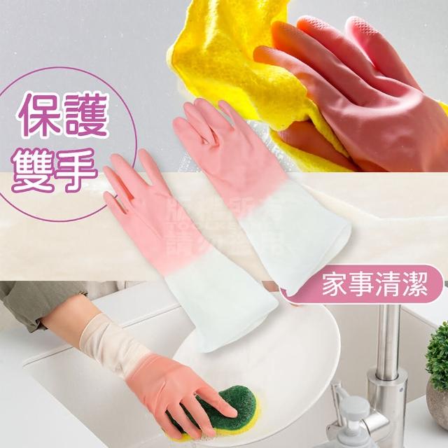 雙色清潔手套(洗碗手套 防水手套 打掃手套 居家手套「工具仁」廚房手套 PVC手套 拋棄式手套 家事手套 塑膠手套)