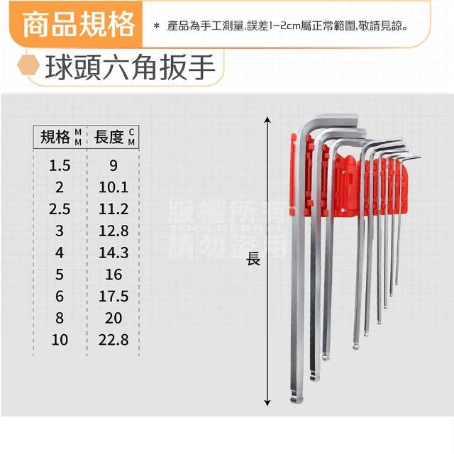球頭內六角板手(1.5~10mm 9件組 球頭六角板手 內六角扳手 手工具 居家修繕 「工具仁」螺絲 螺帽 維修 組裝)
