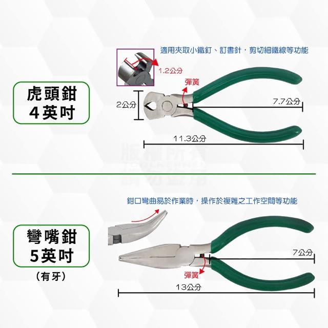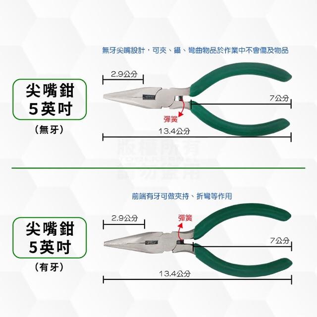 多規格 綠柄 5吋工具鉗(彈簧回彈 無牙尖嘴鉗 斜口鉗 彎嘴鉗 鋼絲鉗 虎頭鉗 平口鉗 「工具仁」手工藝 DIY 電工鉗)