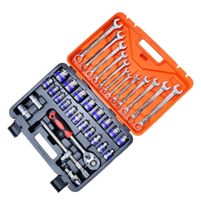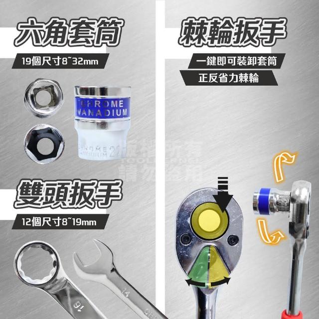 入門首選 37件手工具 全配附收納盒(維修工具組 4分棘輪扳手 「工具仁」六角套筒 開口扳手 梅開板手 汽車 機車 保養)