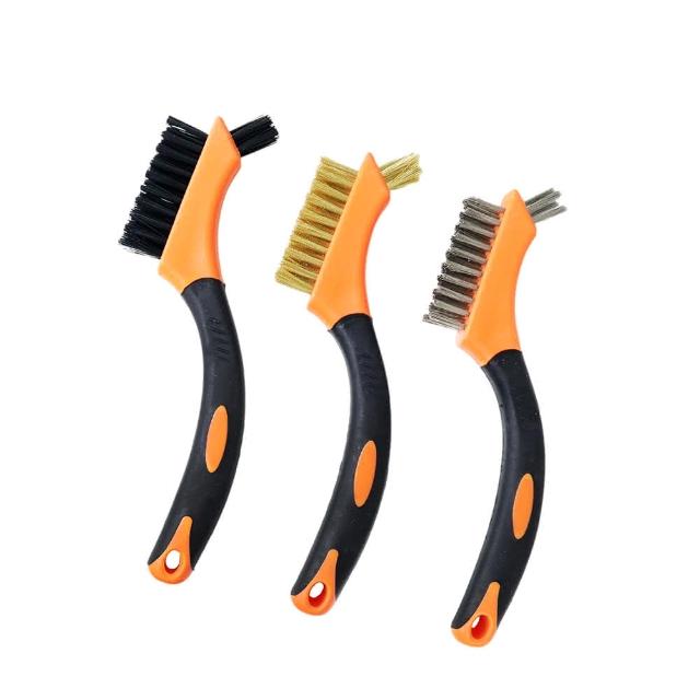 雙頭包膠柄 三入刷組 手柄刷 鋼絲刷 銅絲刷 尼龍刷 清潔刷「工具仁」除垢刷 去汙刷 油垢 除鏽 模具刷 五金刷 鐵鏽