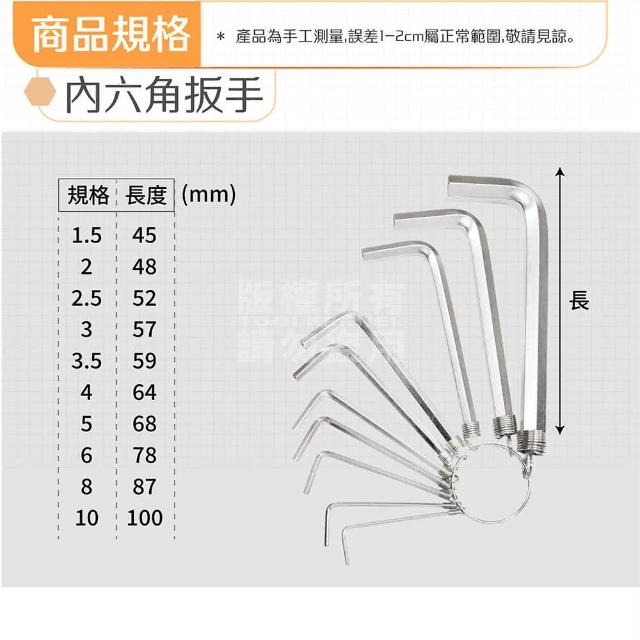 居家必備 內六角板手 10件組 六角扳手 家具組裝 「工具仁」手工具 居家修繕 電腦 螺絲 螺帽 維修 組裝