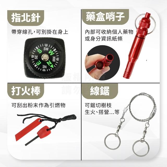 求生工具盒 內含工具 SOS EDC 工具鉗 哨子 防災 逃難 登山 急救包 避難包 地震包 打火石 求生