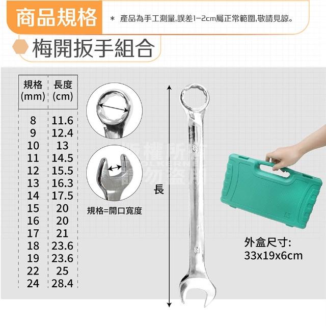 精美盒裝 梅開板手 14件組 附收納盒 8~24mm 梅花板手 梅花扳手 六角板手 維修 機台 汽修 螺絲螺帽