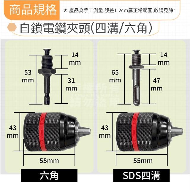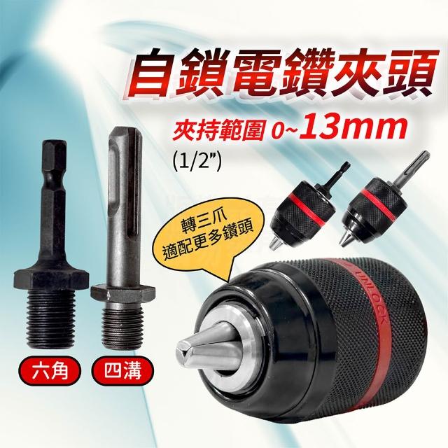 全金屬快速夾頭 13mm 兩款 六角柄快速三爪夾頭 SDS轉三爪 「工具仁」四溝轉六角 衝擊起子機 自鎖夾頭 三爪夾頭