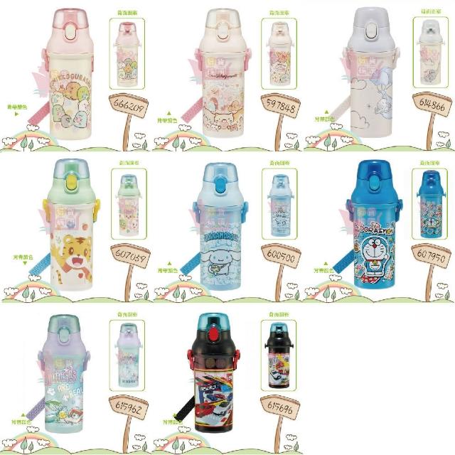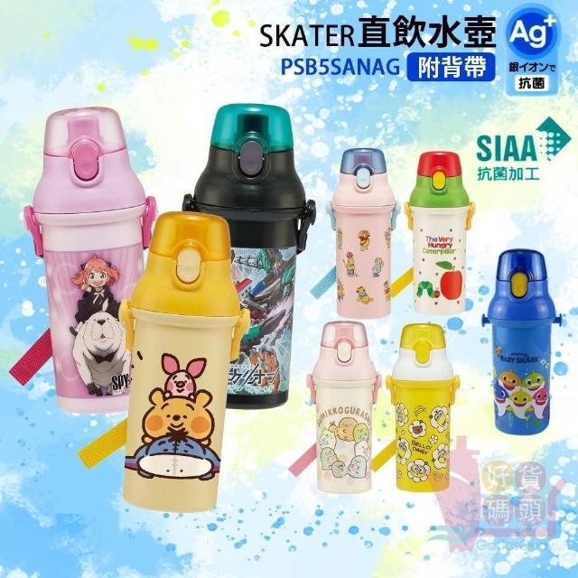 Skater日本製 銀離子抗菌兒童水壺480ml|塑膠直飲卡通水壺彈蓋式附背帶哆啦A夢新幹線小恐龍PSB5SANAG 2館