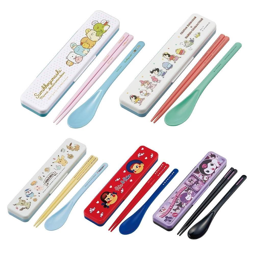 Skater日本製 抗菌環保餐具組|銀離子湯匙筷子大人兒童卡通餐具靜音翻蓋酷洛米寶可夢CCS3SAAG