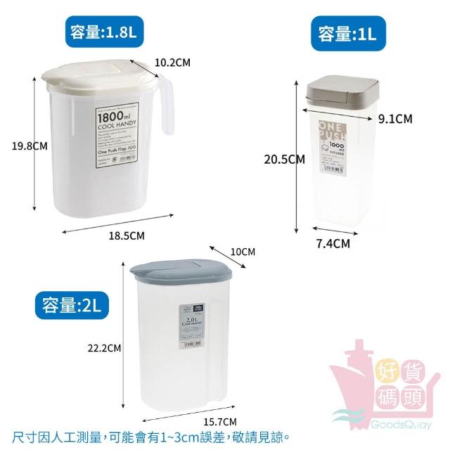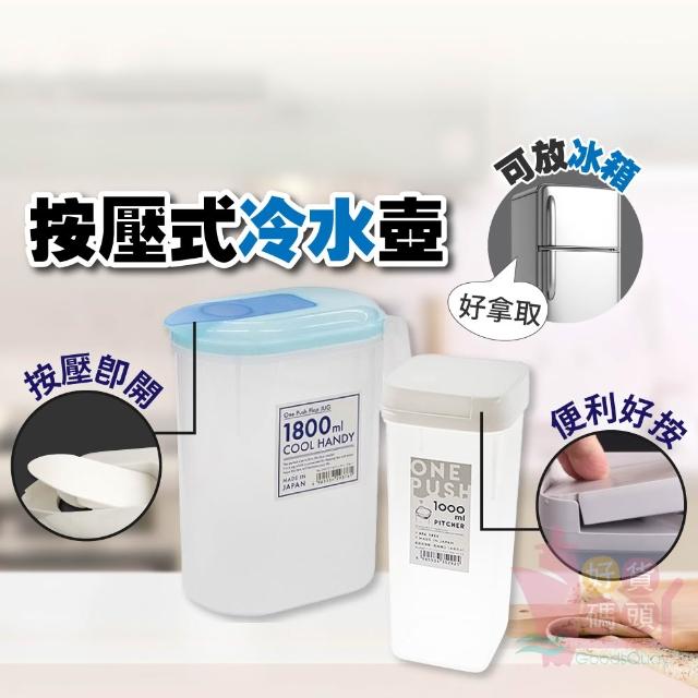 日本製YAMADA山田化學 按壓式塑膠冷水壺|1.8L/1L/2L大容量飲料果汁壺窄身家用耐熱茶壺冰箱涼水瓶冷水筒