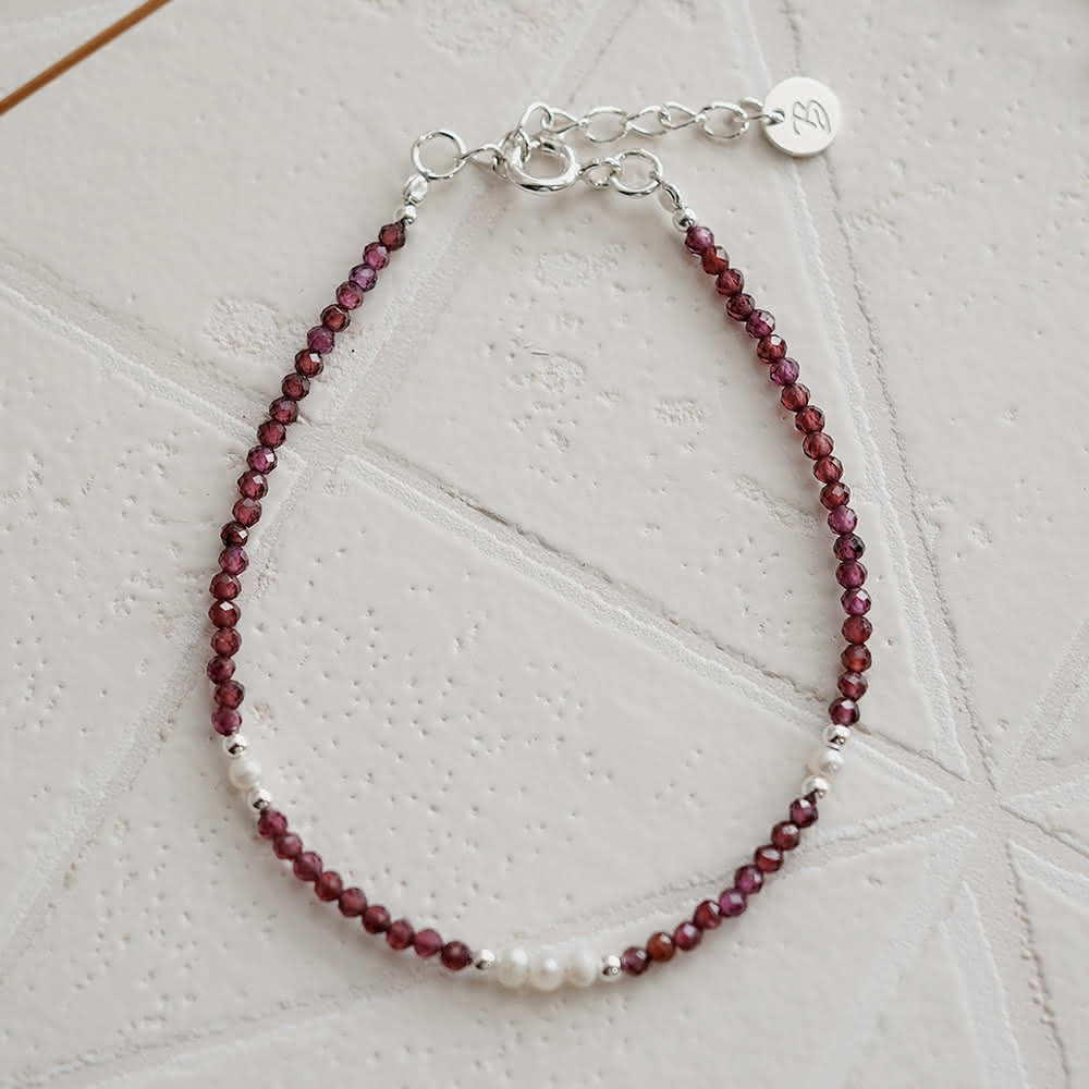 BLUMA海底輪魅力水晶 紅石榴石圓舞曲純銀手鍊(飾品禮盒 聖誕禮物 串珠手鏈 能量石 925銀飾)