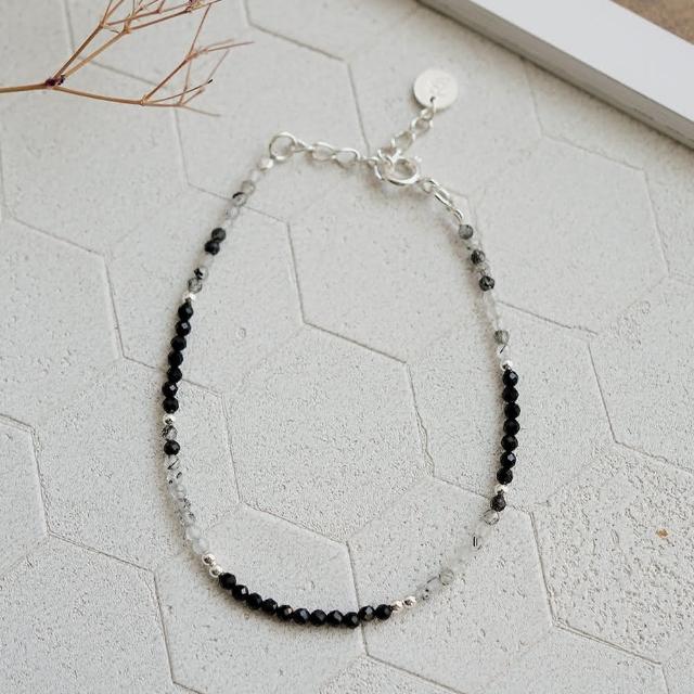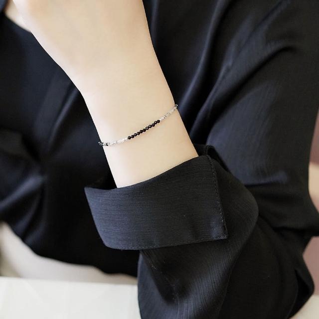 BLUMA黑瑪瑙手鍊 水晶手鏈 法蘭西黑騎士純銀手鍊 黑髮晶 女生禮物 銀飾禮盒