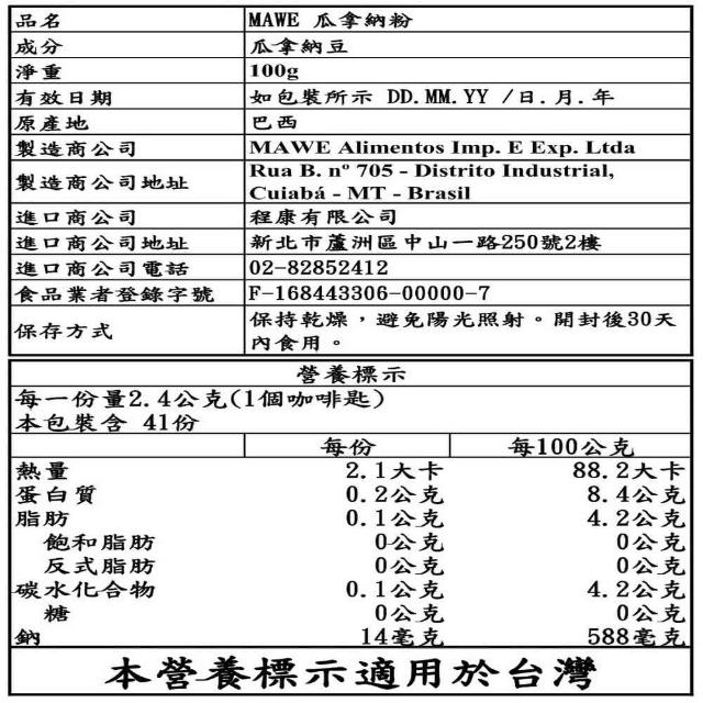 巴西好物-瓜拿納粉-巴西原廠原裝100公克-現貨 Mawe GUARANA(瓜拿納粉)