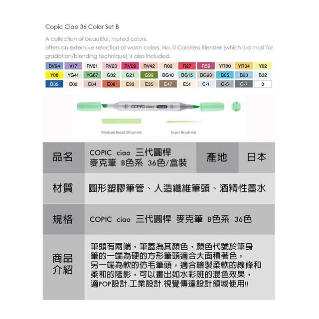 Copic 酷筆客Ciao 第三代圓桿麥克筆 36 Color Set B 36色 B色系 /盒 36B 日本原裝進口