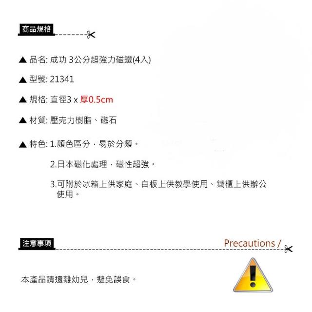 SUCCESS 成功超強力磁鐵 3cm /卡 21341