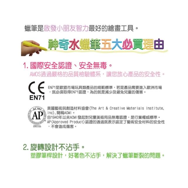 - 蠟筆可溶於水,好清洗,好清理