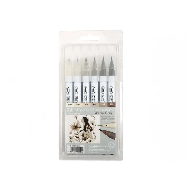 Kuretake 吳竹ZIG 彩繪毛筆 暖灰色系 6支入/組 RB-6000AT-6VC-SU1(日本品牌)