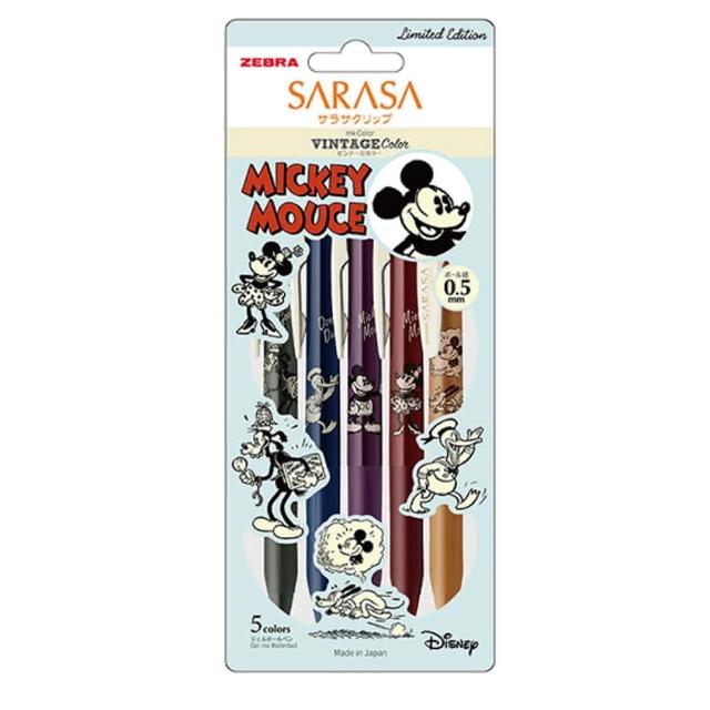 ZEBRA 斑馬牌迪士尼 限定款 SARASA 復古色鋼珠筆 5支 V/C款 組(JJ15-DS2305)