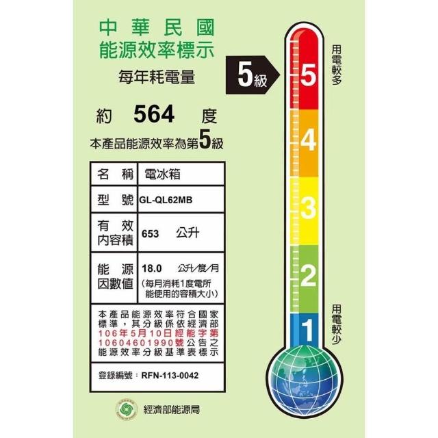 LG 樂金5級能效 InstaView 敲敲看 門中門 對開 冰箱 653L (含基本安裝) / 台 GL-QL62MB
