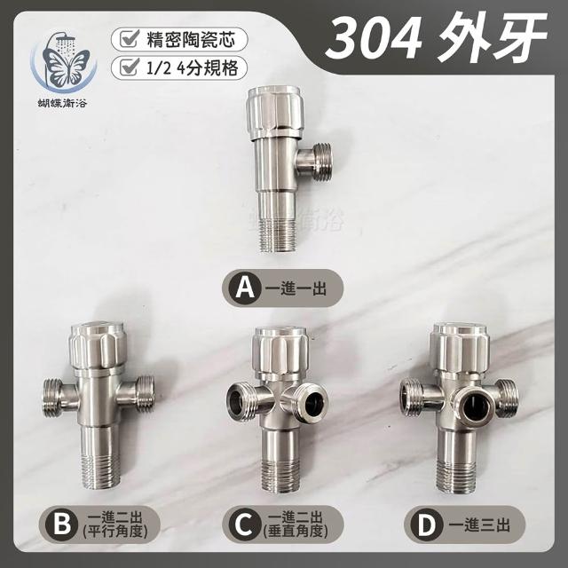 蝴蝶衛浴304不鏽鋼 開關外牙.4分.304外牙.一進二出.一進三出.雙出水角閥.三角外牙.外牙三通.精密陶瓷芯