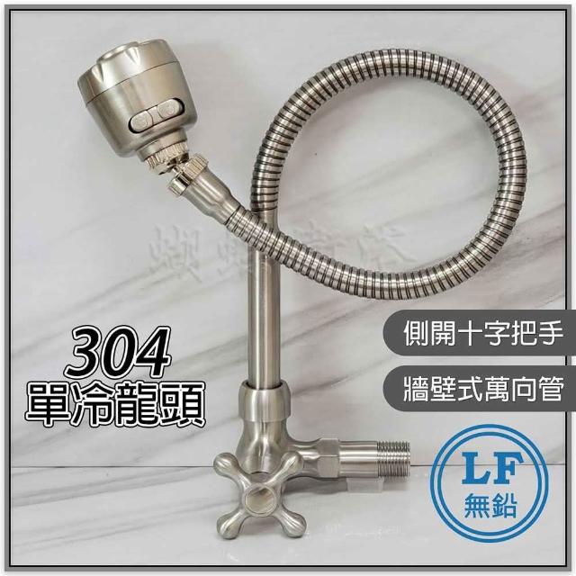 蝴蝶衛浴蝴蝶衛浴~LF無鉛認證 304不鏽鋼牆壁單冷龍頭.無鉛龍頭.廚房水龍頭.側開十字把手.萬向水龍頭.自由栓.
